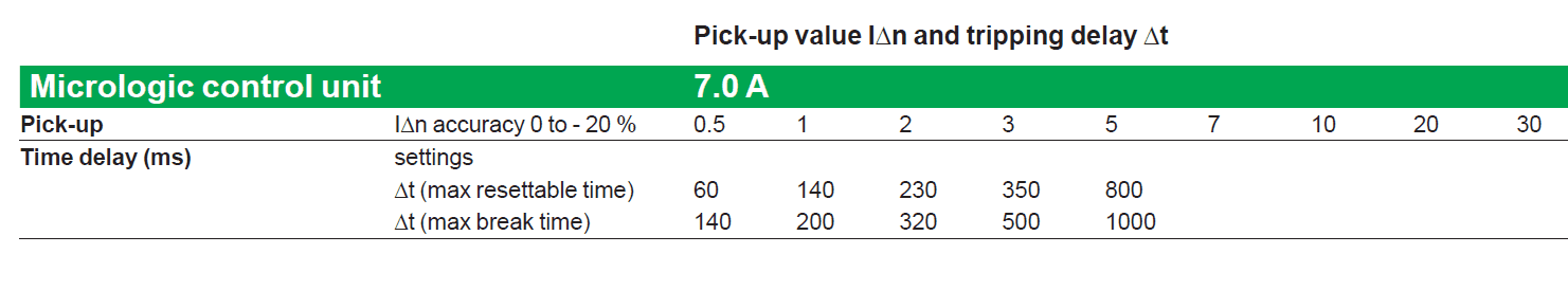 جدول حفاظت نشت جریان در میکرولاجیک ۷ اشنایدر