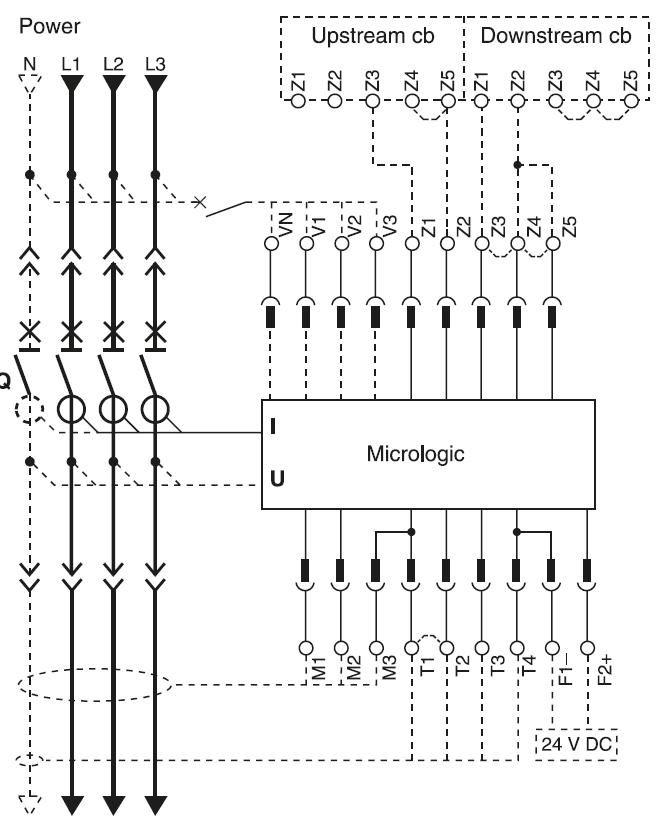 بخش حفاظت در کلید هوایی اشنایدر ماکرولاجیک ( Micrologic) نام دارد. میکرلاجیک از طریق ترانس های جریان که در خروجی کلید تعبیه شده، پیوسته جریان و دیگر پارامترهای قدرت را اندازگیری نموده و اگر مقادیر بیشتر از حد تعریف شده باشد ابتدا هشدار داده و در نهایت کلید را قطع خواهد کرد.
